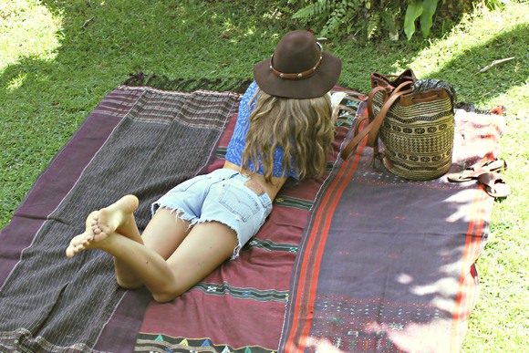 I'm planning my holiday wardrobe of denim cut-offs, light-weight shirts, floaty maxi dresses and oversized sunglasses - all topped off with a 1970s-inspired hat.